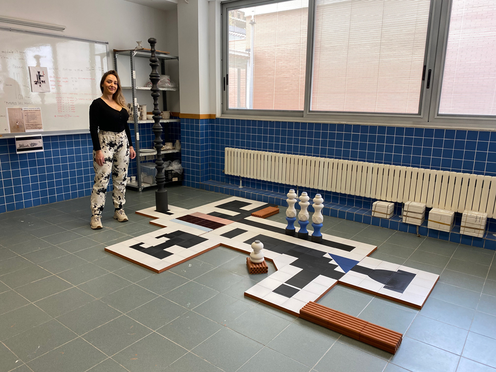 El proyecto que planifica para esta residencia, bajo el título ‘Futuros del pasado’, es un ejercicio de espacialización del tiempo que especula sobre realidades alternativas en un acercamiento directo al entorno de Alcora. Esta idea de paisaje como materia transita por dos coordenadas o ejes fundamentales sobre los que se vertebra el municipio, su patrimonio arqueológico y su patrimonio industrial. Este planteamiento surge de las ruinas de las Termas Romanas de Santa y de las chimeneas que caracterizan al modelo de industria cerámica del contexto. La instalación se formaliza a través de la matricería y su vaciado como módulo constructivo para desplegar una serie de conjuntos escultóricos en porcelana y cemento, sostenidos en un gran paño de azulejería sobre planta. El resultado es una ucronía que combina memoria, ficción, aspiraciones y experiencias en un lugar donde el deseo pueda habitar.