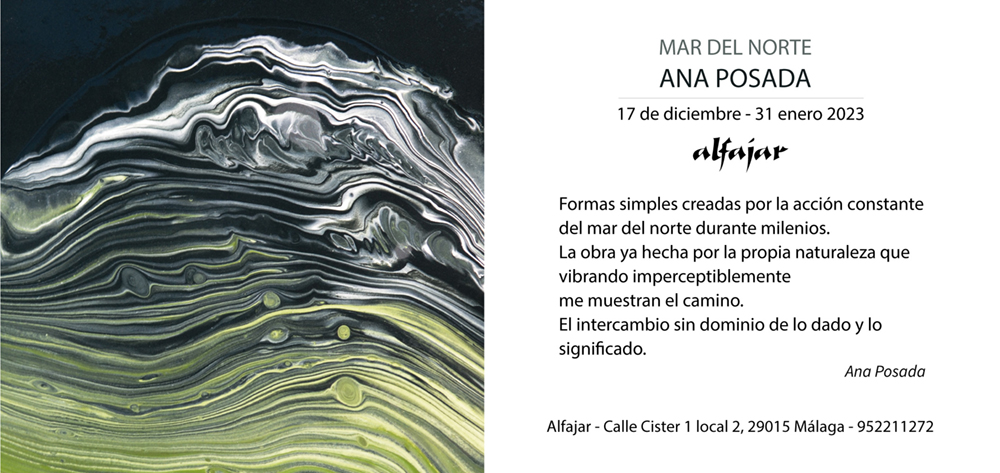 Del 17 de diciembre al 31 de enero se puede visitar en la sala de exposiciones Alfajar, en Málaga, la exposición de obras de Ana Posada, titulada “Mar del Norte”