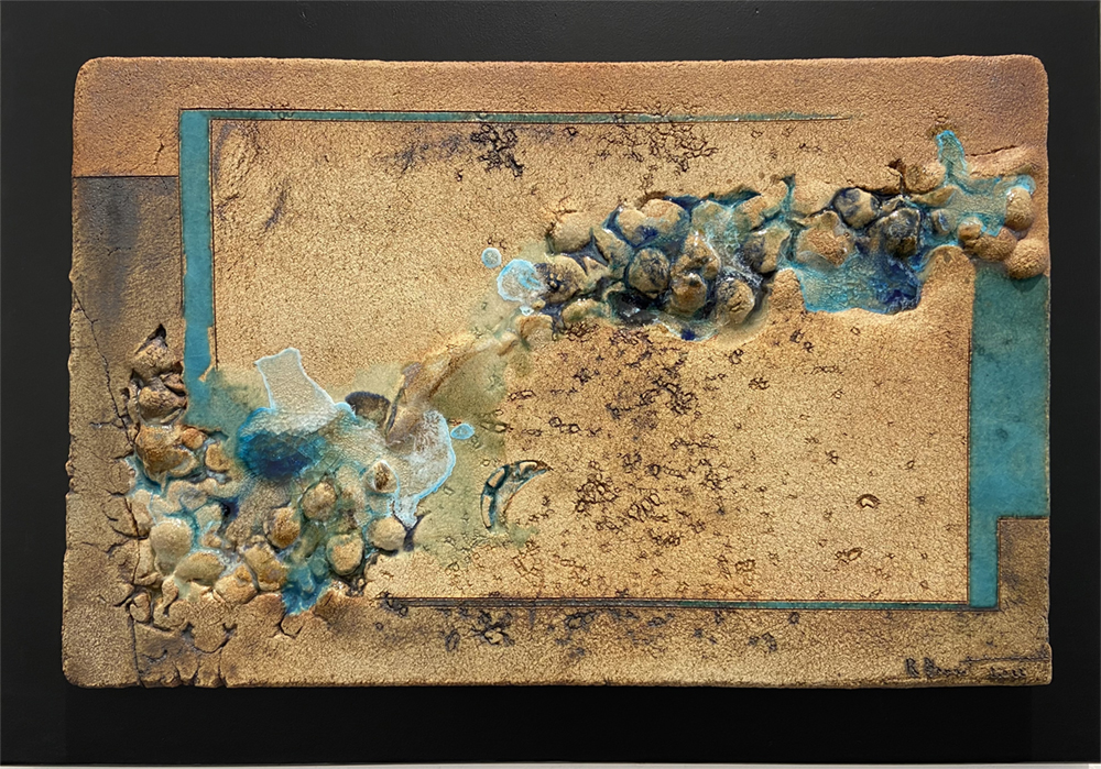Un tercer grupo relacionado directamente con la técnica de impresión de la arcilla “in situ”, huellas de rocas y vegetales, que aportan una mirada distinta de carácter procedimental que ha inspirado esta muestra.