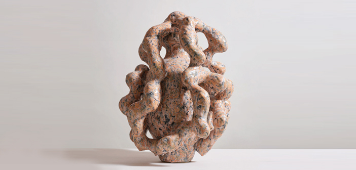 Foto: “Orange Horror Vacui”. Gres y esmaltes. 63,3 × 54 × 54 cm. (Foto: @Jason Jacques Gallery.)