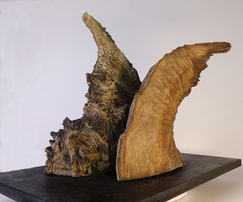Así pues, la presentación del fuego la forman hermosos troncos en los que integré también la tierra y, “jugando” a descubrir dónde empieza el barro y dónde la madera, intuí la posibilidad de la escultura.