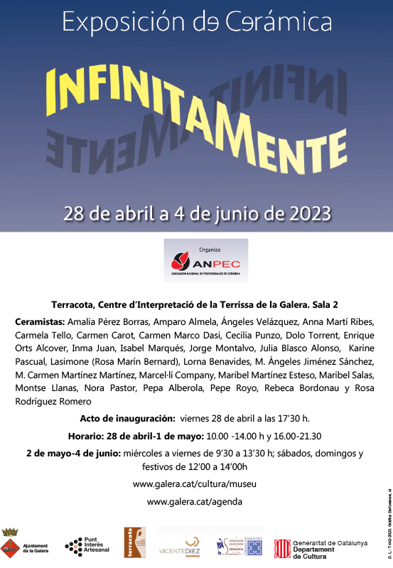 Del 28 de abril al 4 de junio de 2023, la sala de exposiciones temporales de Terracota, Centro de Interpretación de la Alfarería de la Galera (Tarragona) acogerá una exposición de cerámica de la Asociación Nacional de Profesionales de Cerámica