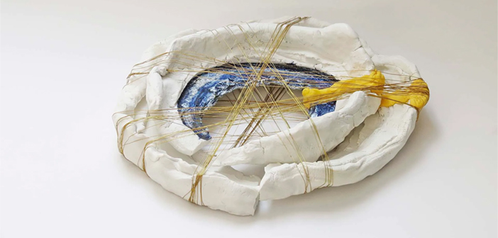 La portuguesa Maria Pedro Olaio introduce en sus obras materiales que no se suelen encontrar en las obras cerámicas, como en la pieza de esta semana, en la que encontramos Hilo metálico y “Sugru”, un tipo de adhesivo moldeable.