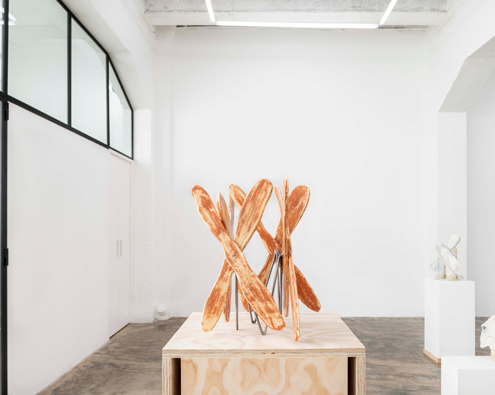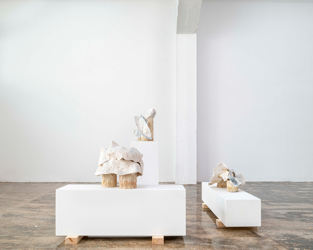 La artista se aproxima a la cerámica desde una perspectiva más bien conceptual a través de la cual combina las posibilidades técnicas que le ofrece el medio con una dimension poética quasi antropológica. Esta exposición incluye también obras realizadas sobre metal lo que constituye un paso más de la artista por explorar las cualidades plásticas de distintos materiales. A través de su obra la artista negocia artísticamente la realidad que le rodea e investiga cuestiones que tienen como común denominador su fascinación por las relaciones humanas con el entorno.