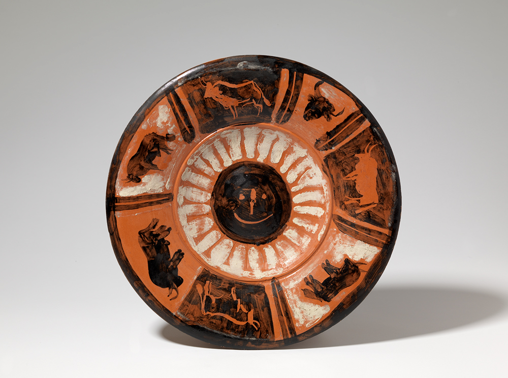 Pablo Picasso. “Soleil et taureaux”, Cannes, 19 de diciembre de 1959. 39 cm (diámetro). Museu Picasso, Barcelona. Donación de Jacqueline Picasso, 1982. (Museu Picasso, Barcelona. Foto: Fotogasull – ©Sucesión Picasso 2023.)