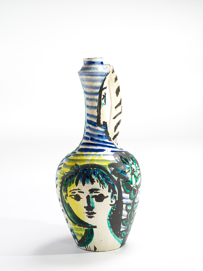 En 1946, durante unas vacaciones en Golfe-Juan, Picasso conoció a Suzanne y Georges Ramié, fundadores del taller de Madoura, donde realizó algunas piezas en arcilla, y con quienes comenzó a trabajar al año siguiente. Aunque ya tenía cierta experiencia con la cerámica, fue realmente en Vallauris, ciudad alfarera, donde Picasso descubrió las diferentes técnicas y donde aprendió rápidamente a dominar el sutil trabajo de la arcilla y los colores. Picasso no se contentaba con decorar formas; quería utilizar todo el potencial plástico que ofrecía el material. Estimadas entre 3.500 y 4.000, las obras de Pablo Picasso en cerámica son abundantes e innovadoras: desvió, transformó y reinterpretó, revisitando la historia de este medio a través de la diversidad de sus fuentes.