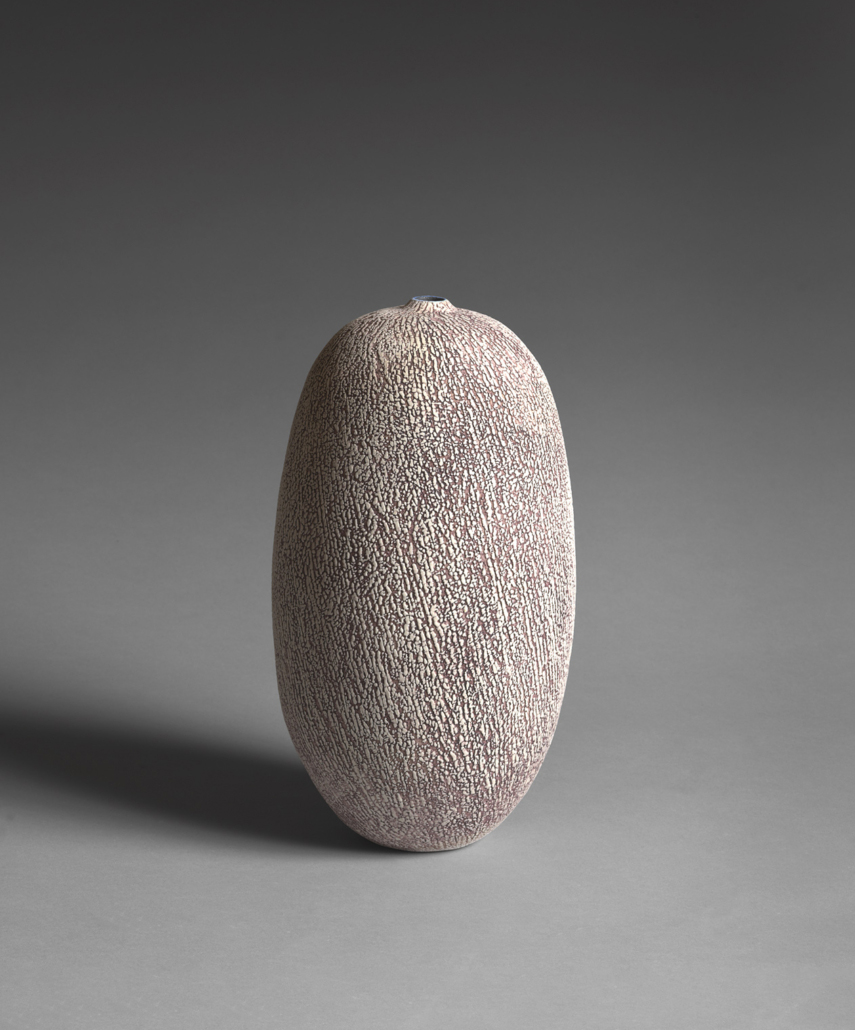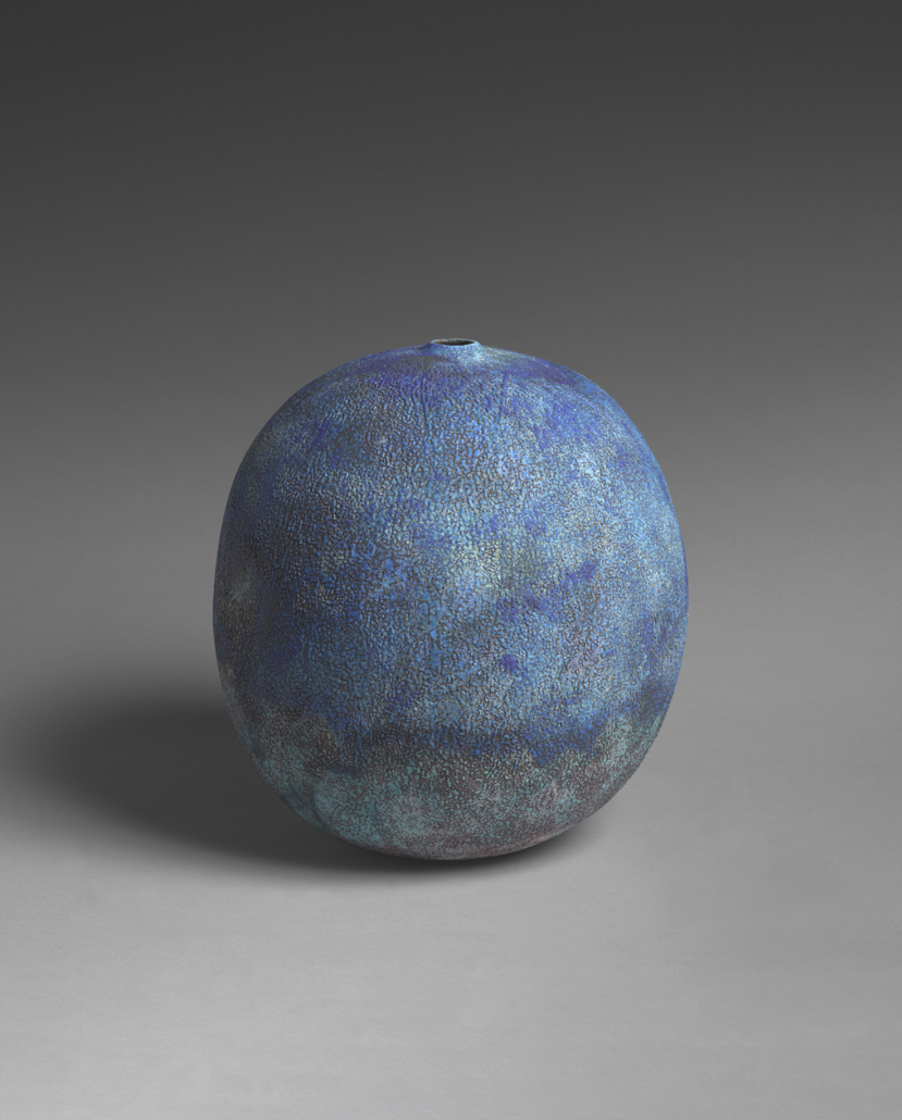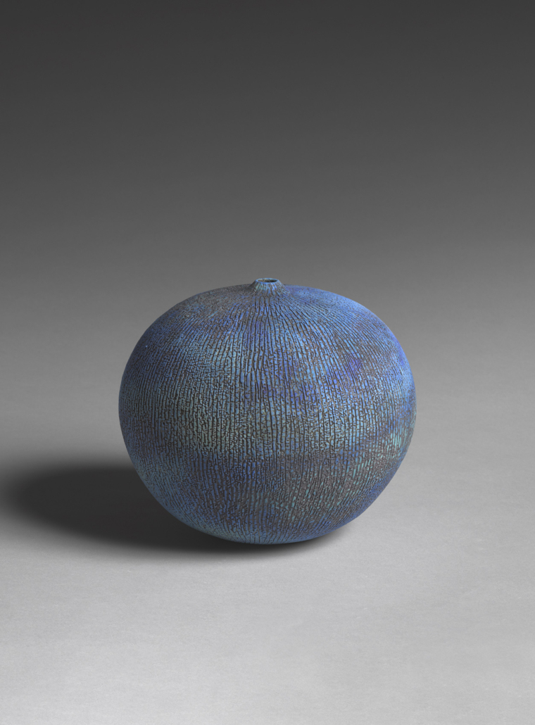 Desde hace más de veinte años, las Esferas ocupan un lugar central en la obra de la ceramista. Están recubiertas de capas de engobe y óxidos coloreados. El artista graba, raya e incide la corteza de arcilla para crear un juego de líneas que siguen la forma del objeto, induciendo al mismo tiempo un movimiento vertical a través de estrías irregulares que recorren la superficie y convergen hacia la minúscula abertura, dando un estilo más gráfico. La “piel” de las Esferas puede parecer irregular, incluso agrietada. Nunca es uniforme. Para Erna Aaltonen huye de la forma perfecta, que a sus ojos es contradictoria con el trabajo de la mano.