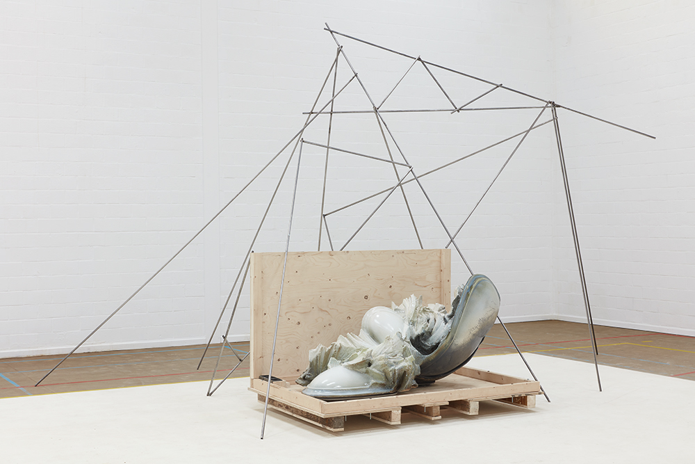 Frank Louis. “Darling, did you turn off the gas?”, 2022. Gres, engobes, esmaltes, metal y manta térmica.