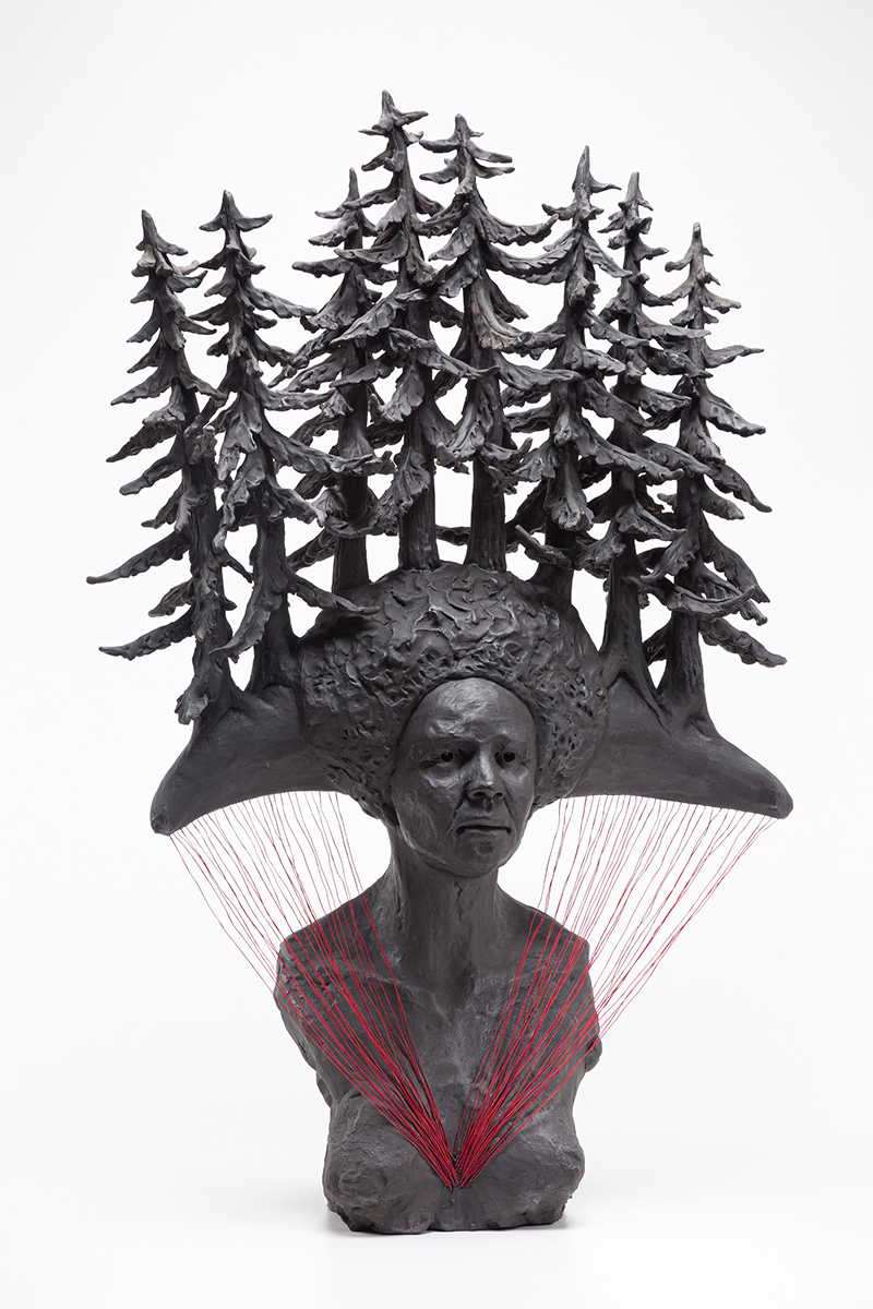 Aisha Harrison. “Ancestor 1”, 2018. Arcilla, grafito, hilo de bordar, 104,1 × 68,6 × 25,4 cm. Cortesía de la artista.