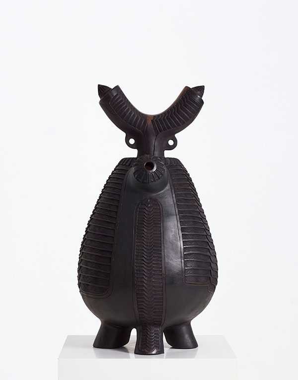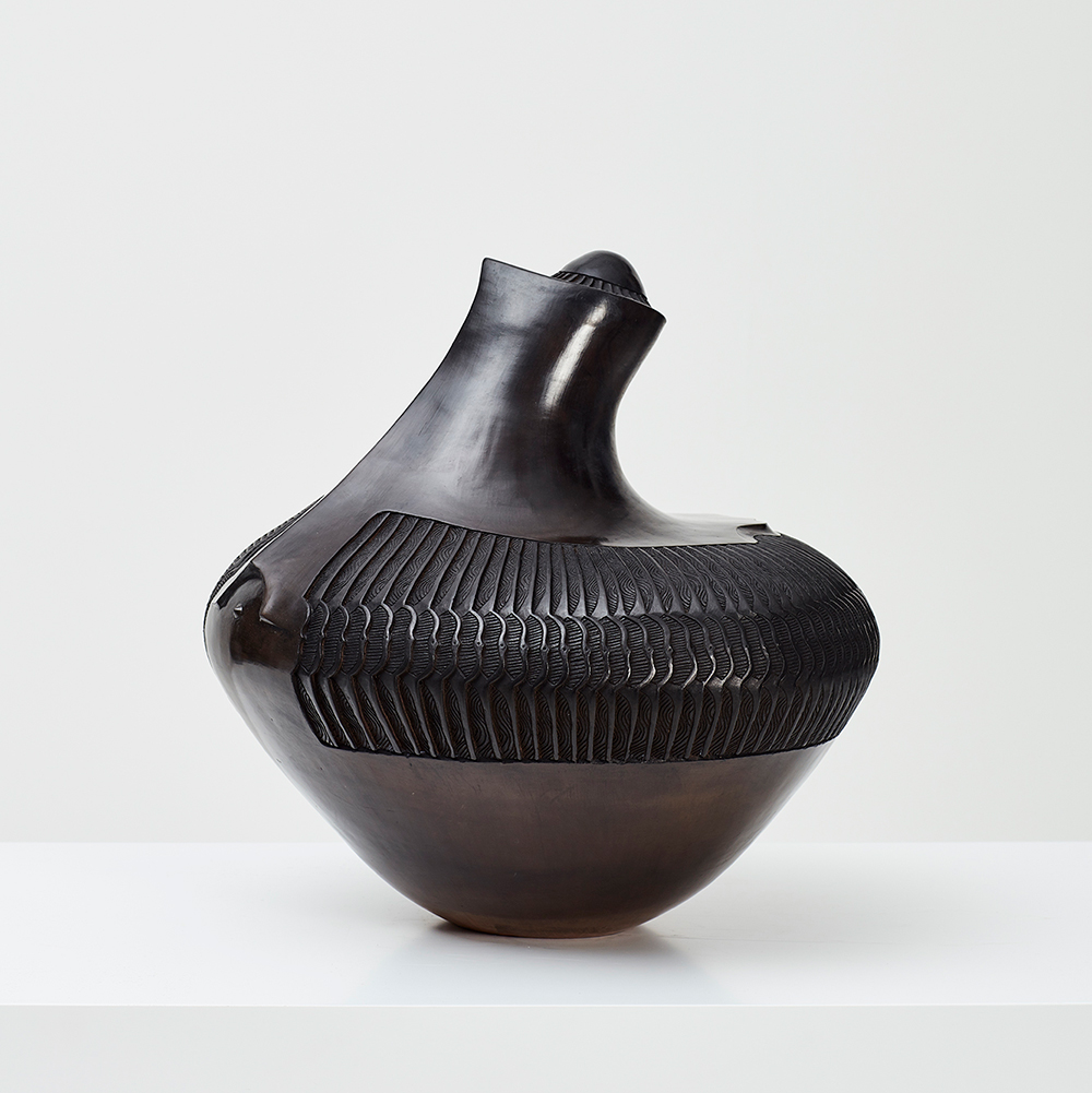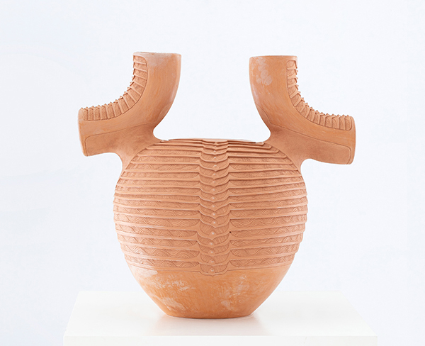 Sin embargo, sus piezas son una evolución contemporánea de la cerámica tradicional indígena del sur de África gracias a sus formas orgánicas, cuyas superficies lisas están marcadas por patrones intrincados y repetitivos que les dan una apariencia escamosa, parecida a la de un insecto.