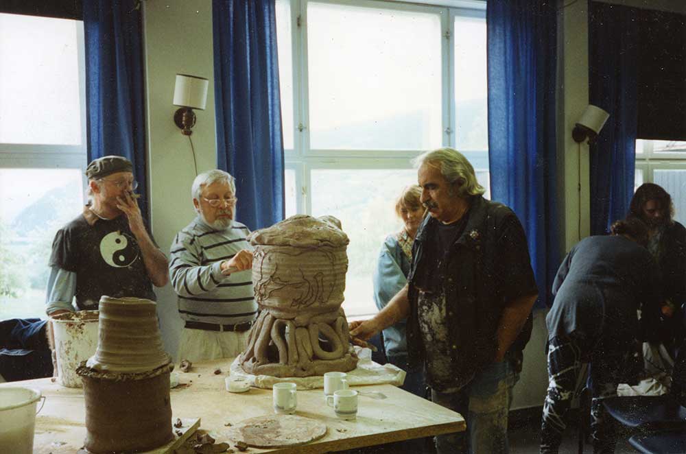 Torbjørn Kvasbø no estaba muy involucrado en el debate sobre cómo llamar a las cosas, pero era un hombre de acción, y podemos ver el taller celebrado en Ringebu en 1993 como su contribución. Al invitar a artistas estadounidenses que, en su opinión, marcaban la pauta en la cerámica como arte, junto con otros profesionales internacionales clave, quería crear un foro que proporcionara inspiración mutua. En opinión de Kvasbø, aunque los ceramistas noruegos carecían de confianza en sí mismos y de ambición en comparación con los estadounidenses, no tenían nada de qué avergonzarse artísticamente. En el periódico Aftenposten llegó a decir: “Ahora mismo, es más importante que los artistas extranjeros vean de lo que somos capaces que lo que podemos aprender de ellos”. Esta afirmación debe considerarse a la luz de los comentarios positivos en relación con el Simposio Internacional de Cerámica de Oslo (OICS), celebrado tres años antes. El Simposio se celebró con motivo del 50 aniversario de la Escuela Nacional de Arte y Diseño (actualmente parte de la Academia Nacional de las Artes de Oslo). Tomando como modelo las conferencias americanas celebradas por el National Council on Education for the Ceramic Arts (NCECA), se organizaron numerosas exposiciones, conferencias y demostraciones de métodos de trabajo bajo el título temático Research in Clay Art.