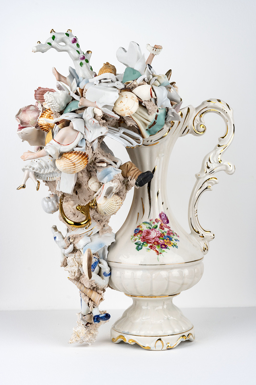 Justyna Smoleń. “Enamorarse”, 2022. Porcelana, cerámica, collage, 45 × 29 × 20 cm. (Cortesía de J. Smoleń.)