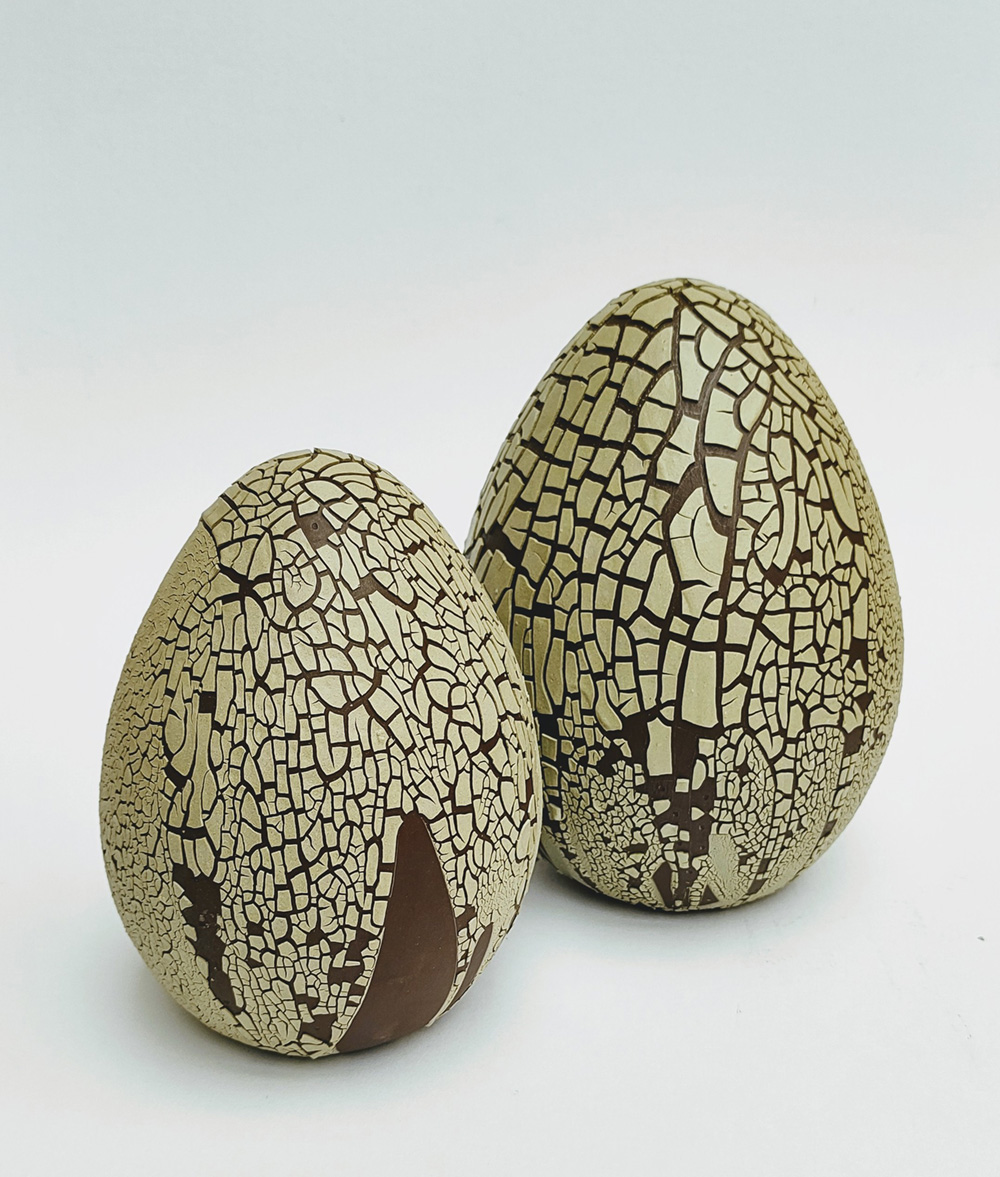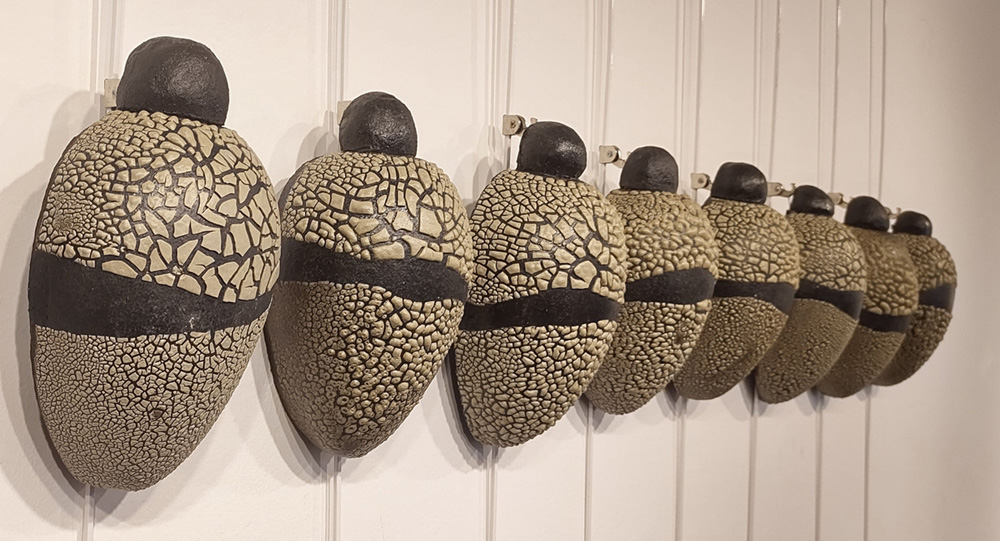 Las texturas nos sumergen en lo primigenio, nos remiten a la piedra derretida y burbujeante y los grafismos nos llevan hacia la mano del ser humano, al origen de la escritura, a la vida en comunidad.