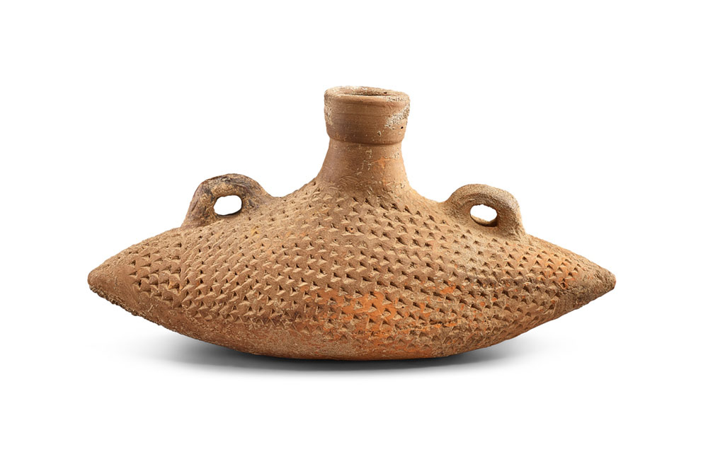 Este frasco de cerámica roja con forma de barca y diseños punteados, de la cultura Yangshao, China, data del 4800-4300 a.C. y fue subastado hace unos meses por cerca de sesenta mil euros en la casa de subastas Sotheby’s
