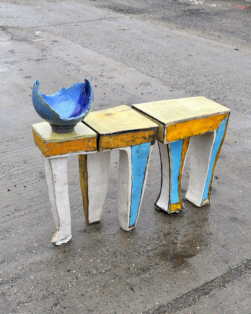 Anna Specylak Skrzypecka. “STÓŁ Z KOPYTKAMI”. pasta chamotada modelada a mano y esmaltada. Altura, 60 cm.