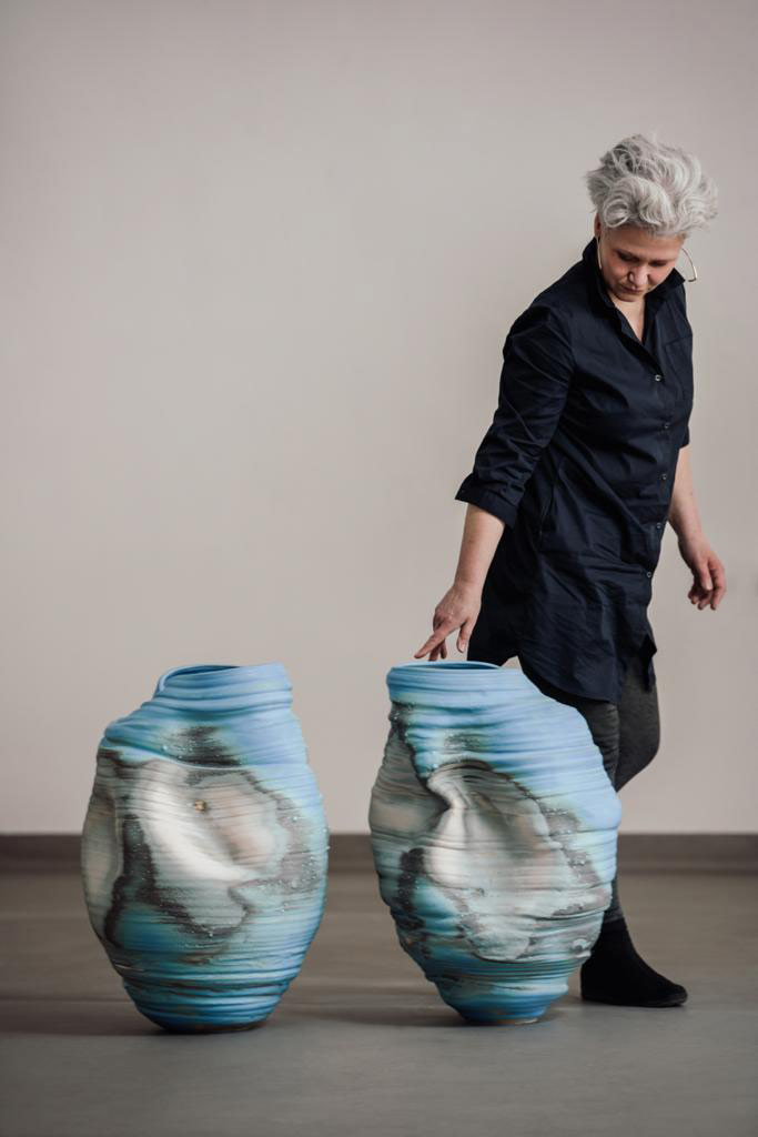 Bozena Sacharczuk. “NATURA”. Gres moldes y torno con vidriado. Altura, 80 cm.