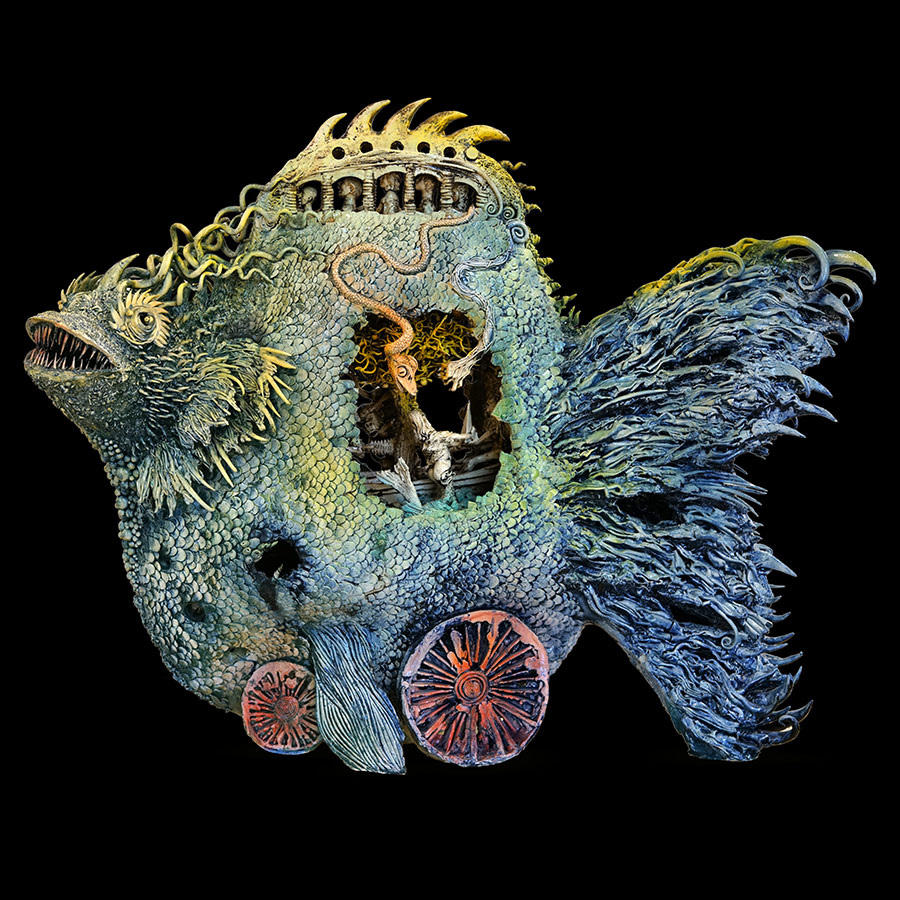 Kazimierz Kalkowski. “RYBA”. Porcelana teñida modelada a mano y parcialmente vidriada. 60 × 60 cm.