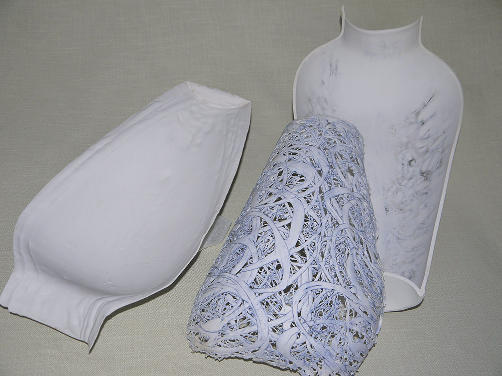 Poli Kurcewicz. “MUMIA”. Porcelana y óxido de cobalto. 16 × 32 cm.