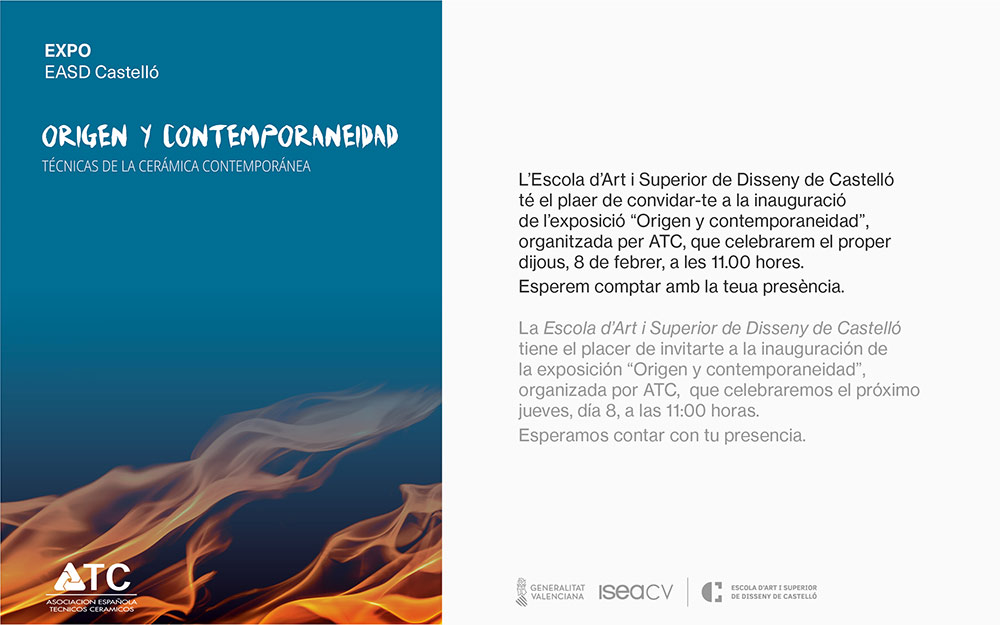 Escola d’Art i Superior de Disseny de Castelló (EASD) presenta esta exposición organizada por la Asociación de técnicos cerámicos (ATC) y comisariada por Rafa Galindo, que muestra un repertorio de técnicas representativas de los procedimientos actuales de la cerámica artística contemporánea de la mano de reconocidos ceramistas
