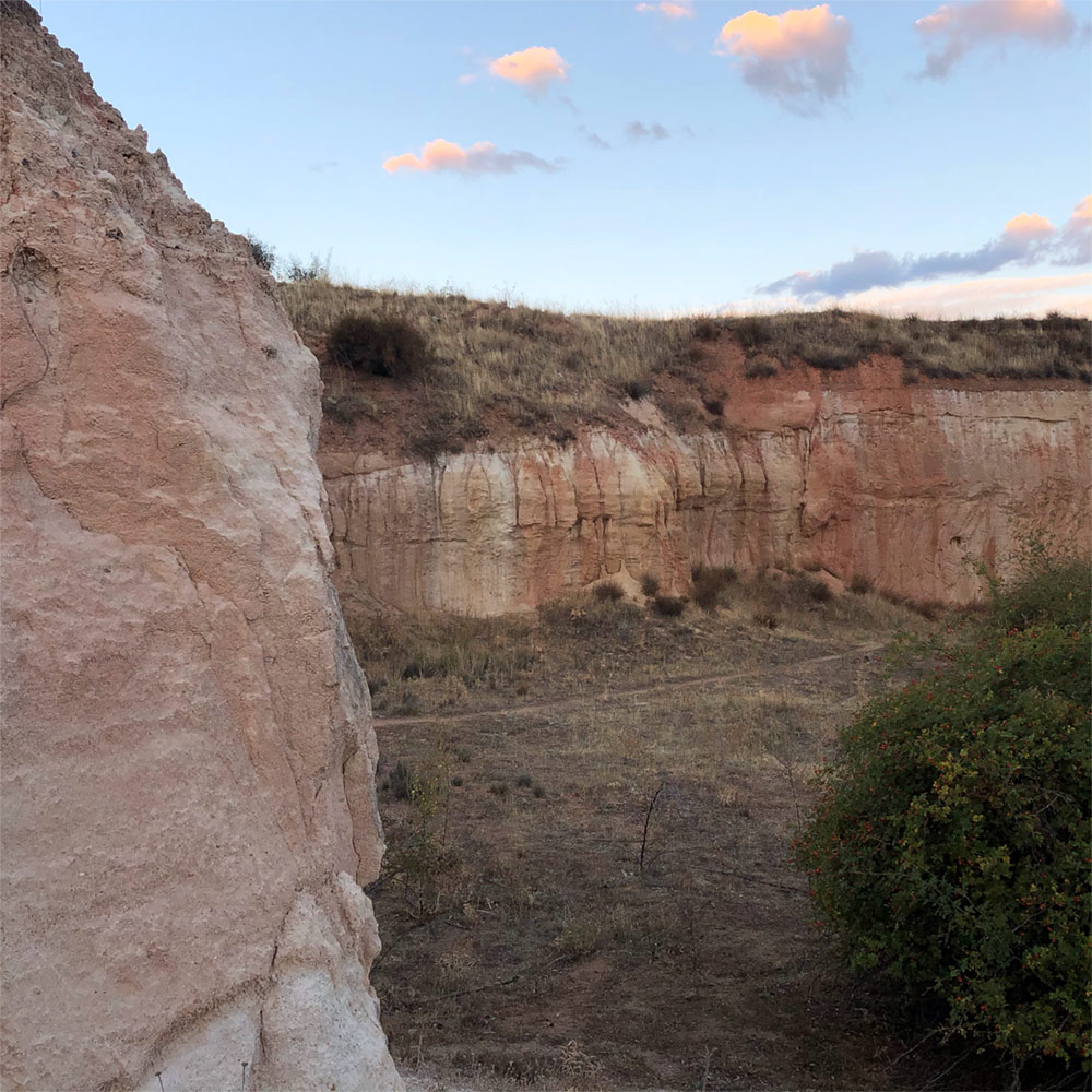 Fue en las inmediaciones de las fábricas históricas de ladrillo y teja, paseando y observando las chimeneas desde la distancia, donde, sobre una colina, que despedía al horizonte vivos reflejos metálicos, aparecerían —asumidos por el paisaje— los primeros fragmentos (y los últimos testigos) de un lugar ahora silencioso, cuyos únicos y huidizos habitantes rehuyen toda presencia, adentrándose en las galerías subterráneas, horadadas en la arcilla más mullida de los barreros, hoy en día abandonados.