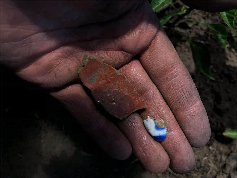 Nosotros, como quien encuentra un tesoro, asistíamos al acontecimiento con la expectación de un arqueólogo, y por supuesto nos asombraban las cavilaciones de papá, quien se aventuraba a discernir si se trataba de cerámica popular —perteneciente a una época lejana, cuando aquella huerta era trabajada por varias familias— o si, por el contrario, más reciente y carente de los signos y registros propios de una pieza de alfarería, podía entonces tratarse de un origen más industrial.