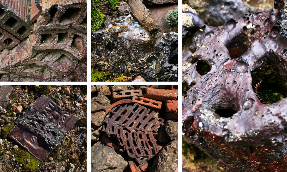 Allí donde su actividad erigió —más de medio siglo atrás— imponentes chimeneas de ladrillo refractario (ahora asumidas y circundadas por una ciudad que expande sus límites) integradas en muros de contención o lindes de vastas extensiones de terreno o incluso inadvertidos y diseminados en la arquitectura de barrios residenciales o edificios de reciente promoción; aparecen ante nuestros ojos los últimos vestigios de aquella producción cerámica, perteneciente a fábricas ya extintas, y cuyo excedente parece condenado a desaparecer bajo el olvido institucional y una naturaleza siempre dispuesta a asumir y devolver a su estado primigenio aquello que ya un día nacería a la sombra de sus colinas y barreros.