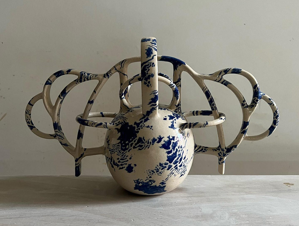 Aniana nació en Siguenza (Guadalajara) pero lleva ya muchos años desarrollando su carrera primero en Madrid, luego en Berlín y ahora es artista colaboradora de Mena Fueco, un estudio cerámica en Grottaglie, una pequeña ciudad del sur de Italia, conocida por su tradición cerámica.