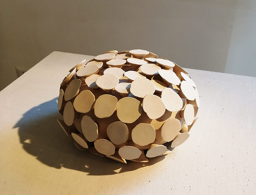 Pieza de cristalizaciones con ácido de José Manuel González Avilés. Exposición en el Antico Convento dei Cappuccini, Grottaglie