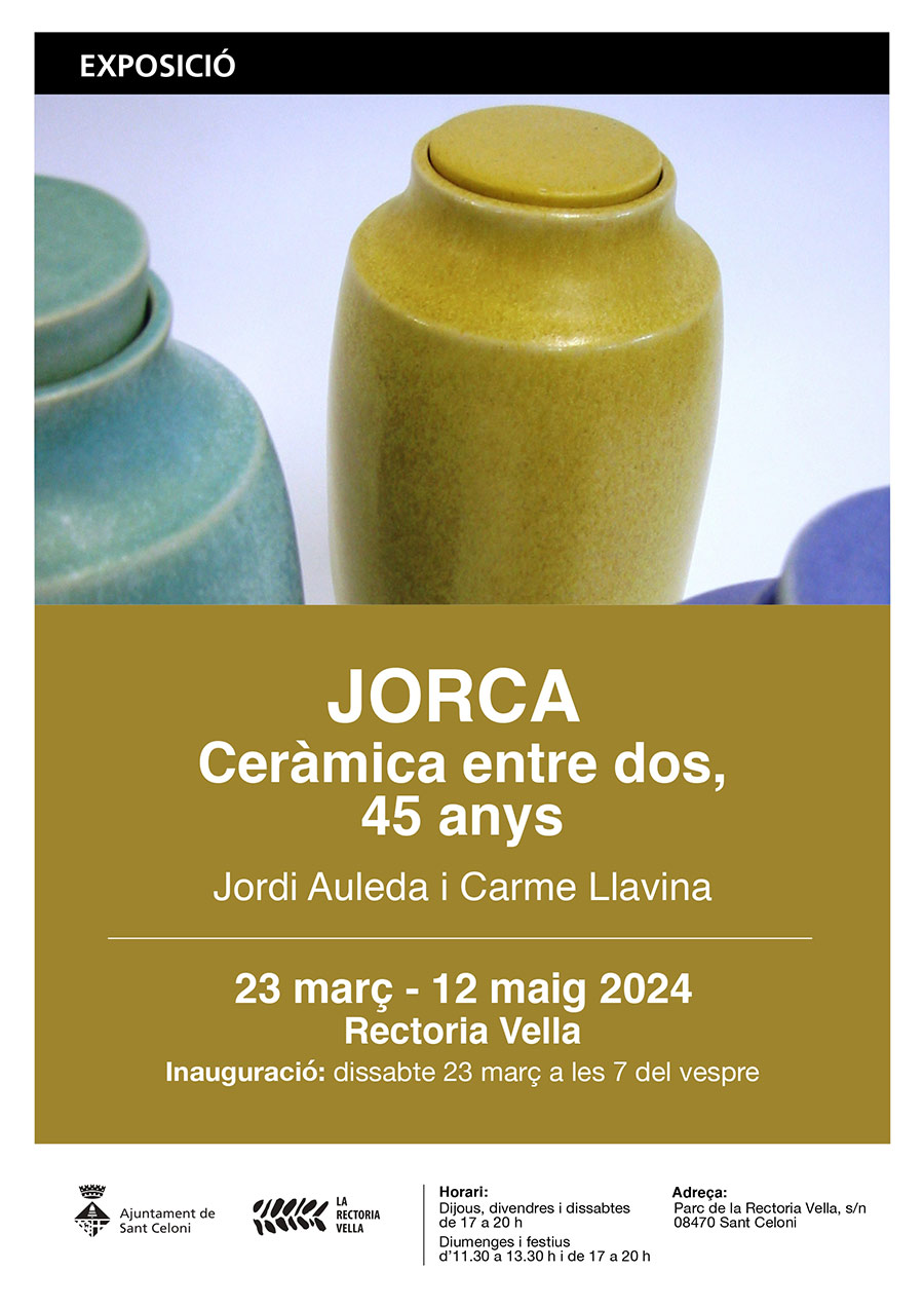 El pasado sábado 23 de marzo se inauguró en La Rectoria Vella, de Sant Celoní (Barcelona), la exposición de obras de cerámica de Jordi Auleda y Carme Llavina, fundadores del taller-escuela de cerámica JORCA, en la Rectoría de Sant Celoni