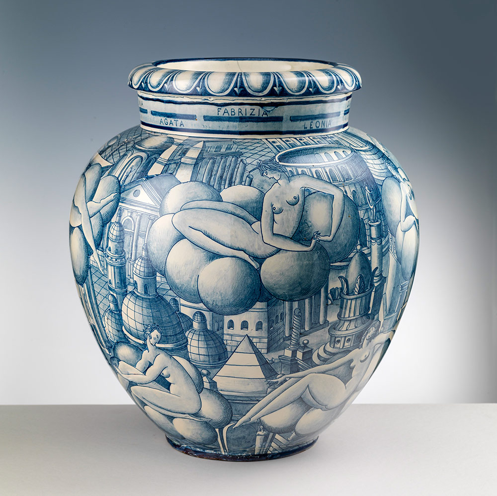 Su relación con la cerámica comenzó en 1921, cuando Ponti llegó a Richard-Ginori e inició la renovación del repertorio histórico de la manufactura, proyectándolo hacia el emergente gusto Art Déco. La exposición se centra en la contribución fundamental realizada a lo largo de aproximadamente una década, proponiendo también comparaciones con diseñadores y artistas activos en los mismos años en otras manufacturas italianas, destacando las repercusiones que el modelo de Ponti tuvo en el contexto contemporáneo.
