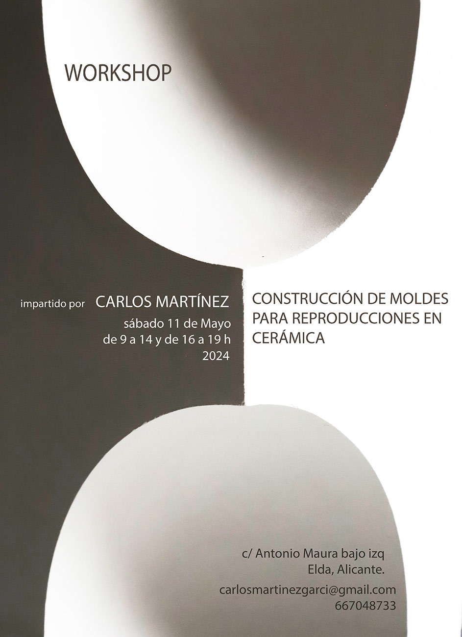 Carlos Martínez García anuncia el próximo “Taller de Construcción de Moldes” para reproducciones en CERÁMICA, que impartirá en su taller de Elda, Alicante, el sábado 11 de Mayo de 9 a 14 y de 16 a 19 h.
