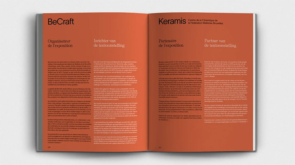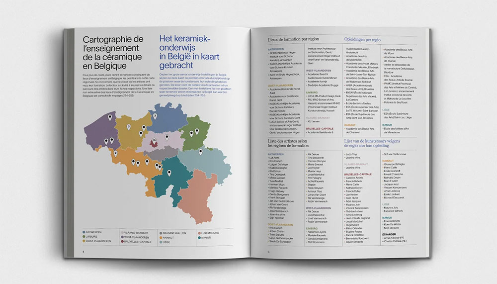 Encontramos en el libro, además de datos sobre las principales escuelas, una historia de la enseñanza de cerámica, los inicios, la estructura y la forma en que las diferentes escuelas se formaron, así como el modelo de docencia que se podía encontrar. A continuación accedemos al catálogo propiamente dicho, en el que conoceremos a decenas de profesores, empezando por nombres como Émile Lombart (1859-1938), Eugène Paulus (1876-1930) o Charles Catteau (1880-1966) hasta Robin Vermeersch (1977), Sarah De Schepper (1979) o Stij Yperman (1979).