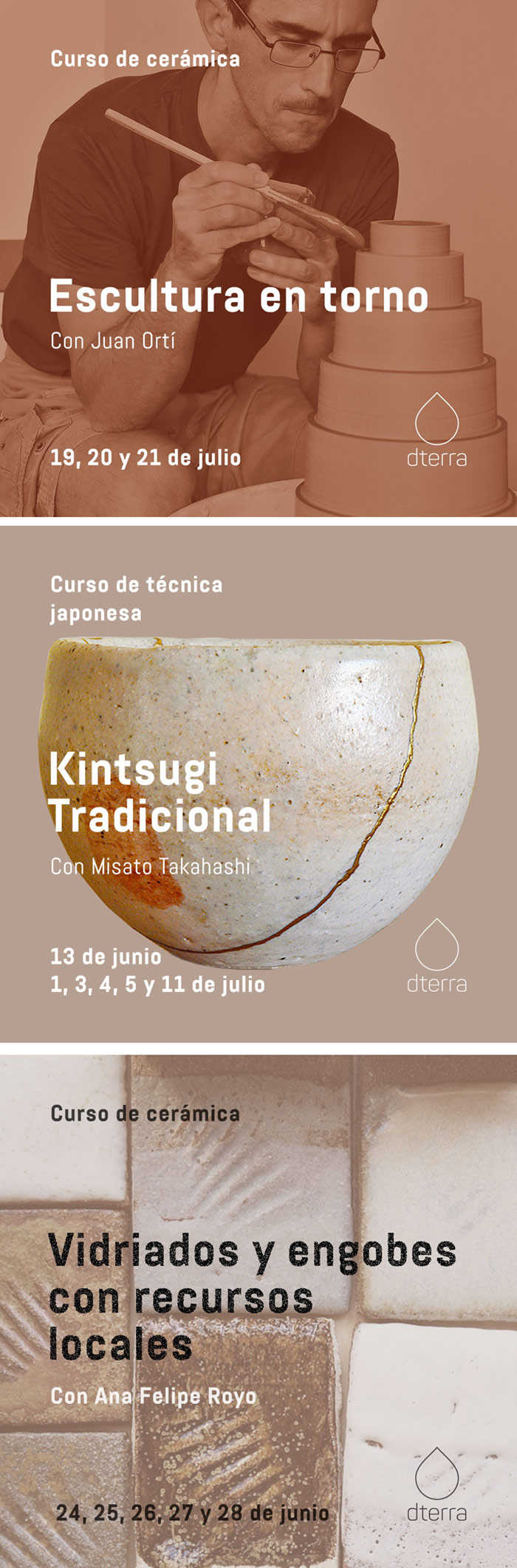 - Curso de Vidriados y engobes con recursos locales, con Ana Felipe; https://www.dterra.art/vidriados-y-engobes