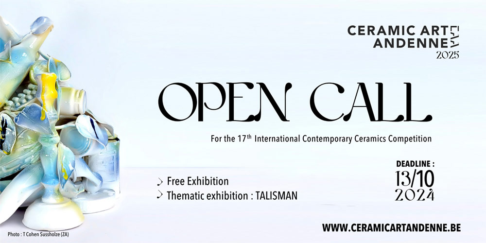 Ceramic Art Andenne convoca su 17º concurso internacional de cerámica contemporánea. Para esta próxima edición, que tendrá lugar del 17 de mayo al 15 de junio de 2025 en Andenne (B), una de las exposiciones se centrará en el tema “Talismán”. Es un tema fascinante por el que dejarse llevar. Será su oportunidad de explorar todos los misterios, símbolos y poderes ocultos de los talismanes a través de la cerámica. Si no le inspira este tema, podrá presentar sus mejores piezas a la exposición gratuita.