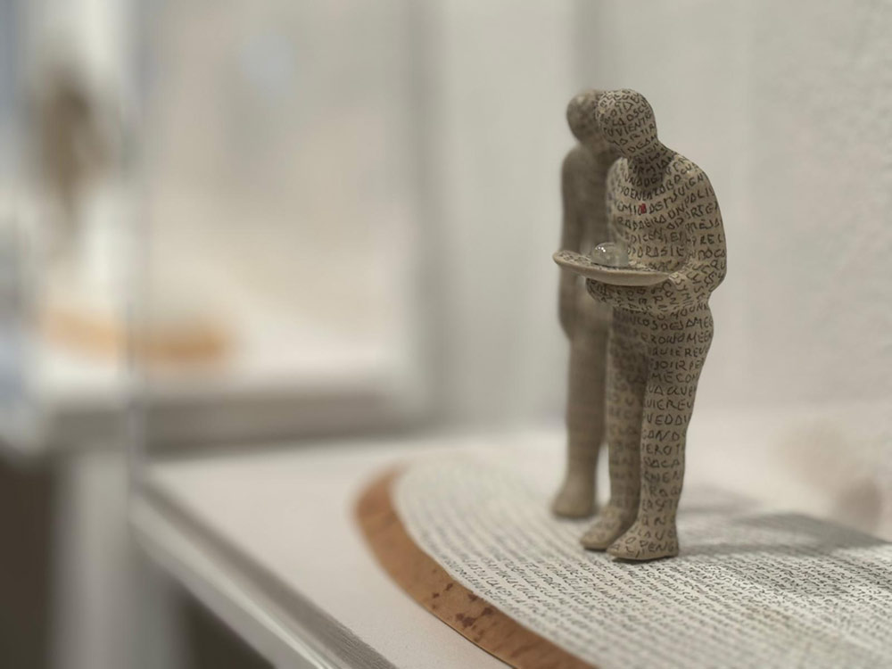 La cerámica de Romero se llena de la poesía contemporánea de autores como Ángel González o Chantal Maillard. Escritas por el propio autor como un mantra, en espiral, como líneas de pequeñas hormigas de letras que siguen un camino, incluyendo a las figuras que transitan sobre ellas. La obra habla en silencio al observador, invitándolo a pararse y mirar e interpretar.