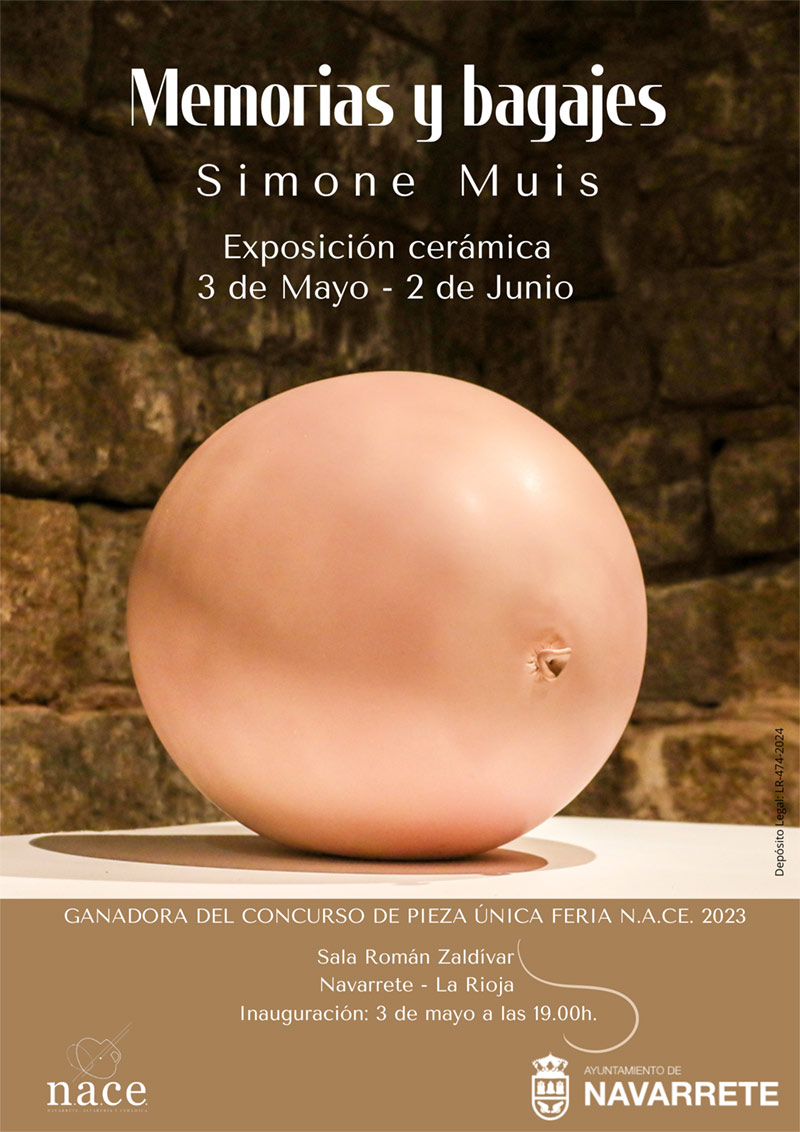 Desde el pasado 3 de mayo y hasta el 2 de junio se puede visitar, en la Sala de Exposiciones Román Zaldívar de Navarrete, La Rioja, la exposición de cerámica titulada “Memorias y bagajes”, de Simone Muis, ganadora de la edición 2023 del Concurso de Pieza Única N.A.CE.