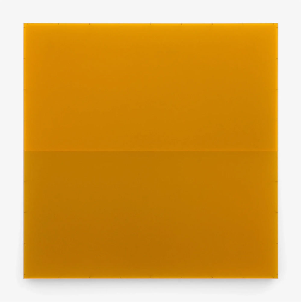 KATSUHITO NISHIKAWA. “Kuchinashi-iro / Color gardenia”, 2006. Vidrio acrílico, hilo de plata. 59,7 x 59,7 x 3,4 cm