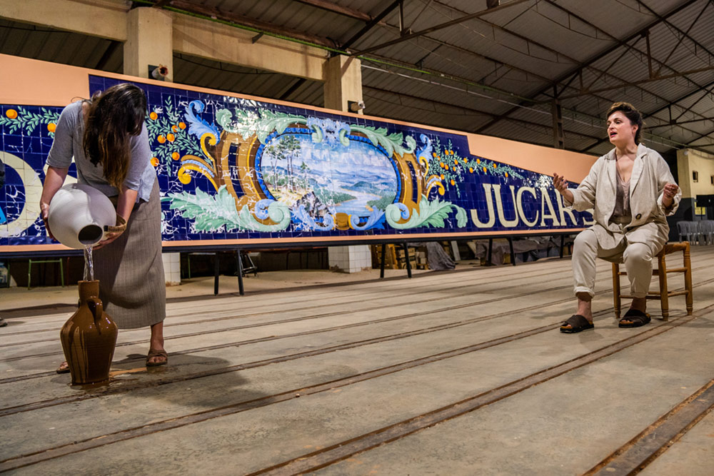 La audiencia disfrutó durante toda la tarde, comenzando con la propuesta íntima y cálida de las artistas Verónica Moar y Paula Pintos, quienes con “Entre Cántara e Càntir” rememoraron esos cántaros cerámicos con que las madres de antaño recogían el agua. Las artistas gallegas presentaron una conmovedora propuesta que acercaba, mediante la música y el sonido, la cultura alfarera de Buño y la alcorina. Esta performance estremeció a cada espectador que vibró con la emoción de la voz de Pintos mientras Moar nos hacía sentir la energía del agua, de cargarla y compartirla, una fuente de cuidado y comunidad. Una vuelta a la tradición, a la esencia cerámica, a la esencia del grupo, la humanidad.