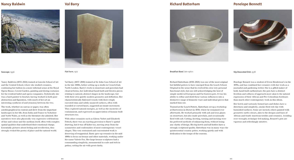 En la segunda parte del libro, David Whiting hace una semblanza de otros muchos ceramistas incluidos en la colección, y ahí encontramos también a los grandes clásicos de la cerámica británica: Michael Cardew, Hans Coper, Bernard Leach, Lucie Rie, por citar solo los más conocidos a nivel internacional. Incluso se aporta un listado de otros ceramistas incluidos en la colección.