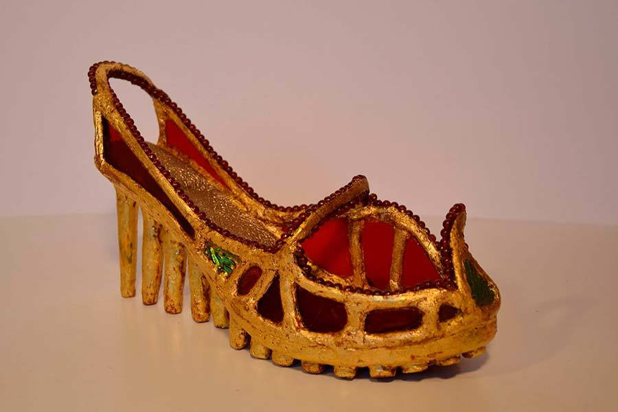 Actualmente la imaginación me ha llevado a la creación de innumerables obras en cerámica, reciclaje, vidrio, etc, la temática en mis últimas obras es el zapato de tacón femenino.