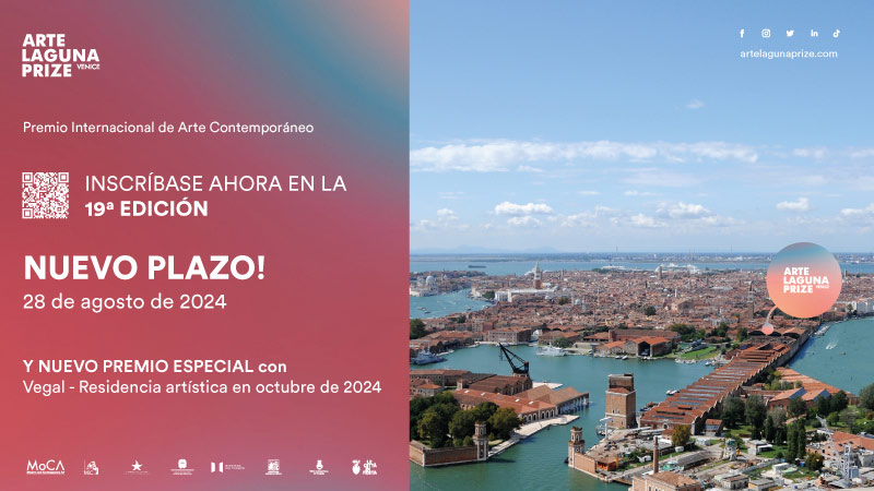 Se amplía el plazo de presentación de candidaturas para la 19ª edición de Arte Laguna Prize hasta el 28 de agosto de 2024, que abre una nueva oportunidad para los artistas: el Premio Especial con VeGAL que, junto con los otros 17 Premios Especiales, enriquecen aún más las ocasiones ofrecidas a los participantes
