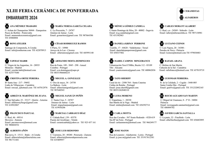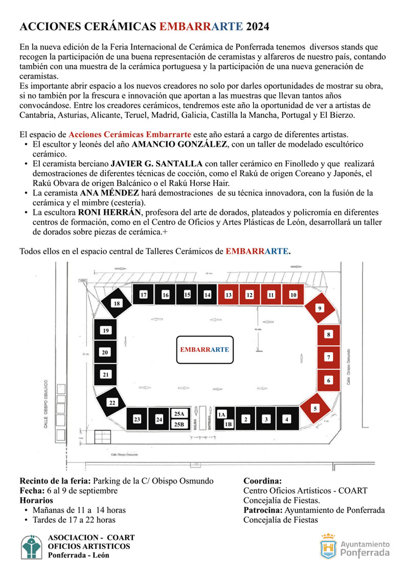 Ya está anunciada la edición de este año de la XLIII Feria de Cerámica de Ponferrada (León), que se celebrará del 6 al 9 de septiembre, junto a las actividades de Embarrarte 2024