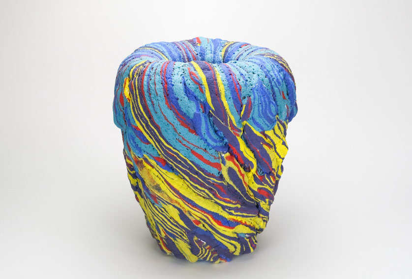 Foto: “Thick”, 2023. Baja temperatura, bajocubierta y esmalte espumado. 33 × 33 × 40,6 cm. (De la página web www.jasonjacques.com)