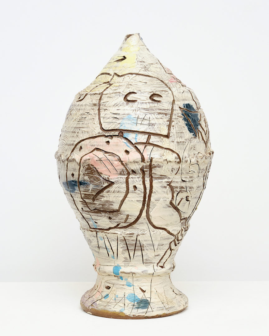 “Helmets and Shields”, 1989. Alto, 75 cm. Gres, engobes y sgraffito.