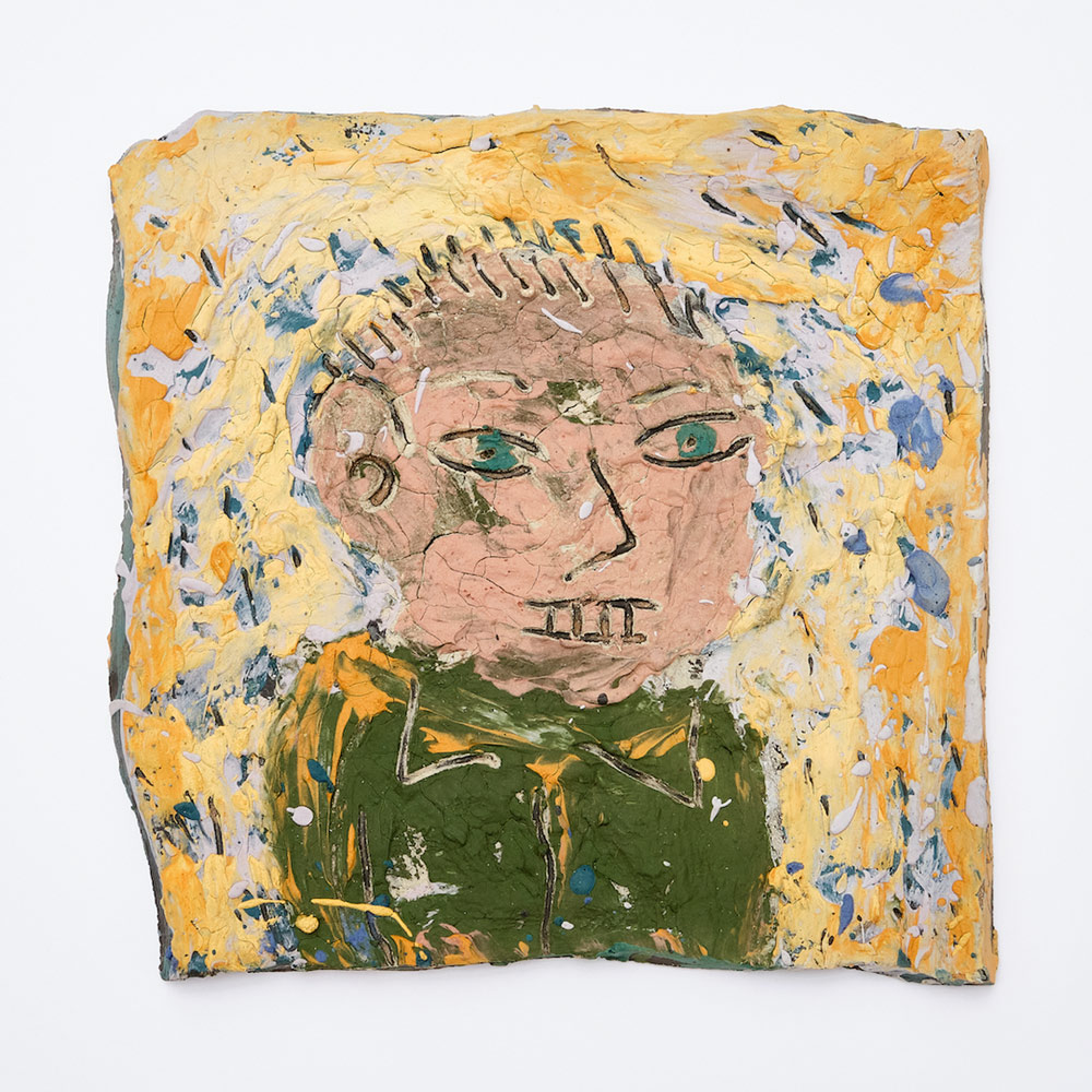 “Portrait of a Young Man”, 1983. 34,3 × 34,3 × 3,8 cm. Gres, engobes coloreados y sgraffito.