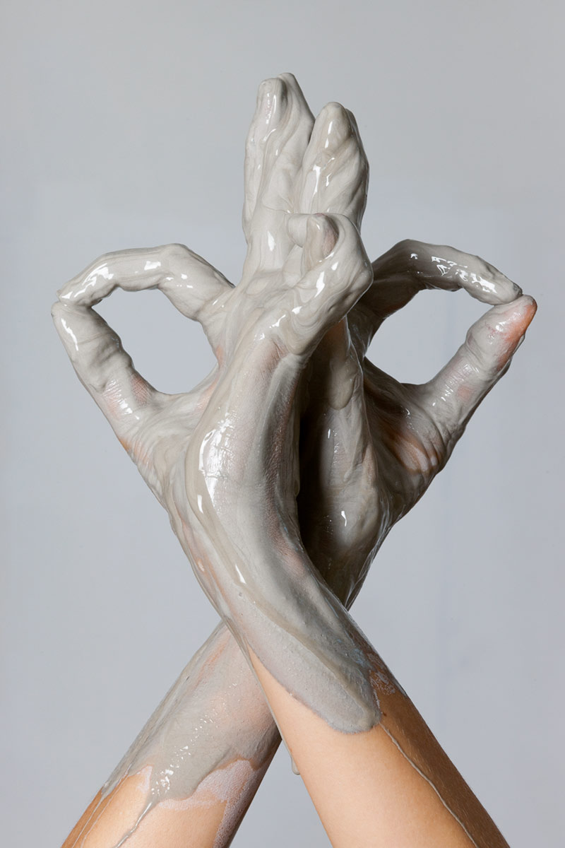 Tanto las obras fotográficas como las esculturas representan la expresión artística, encarnan la huella de las manos del artista y encapsulan el potencial del acto creativo. Este tema forma parte de una investigación artística más amplia sobre el papel del artista como agente y vehículo de la creación.