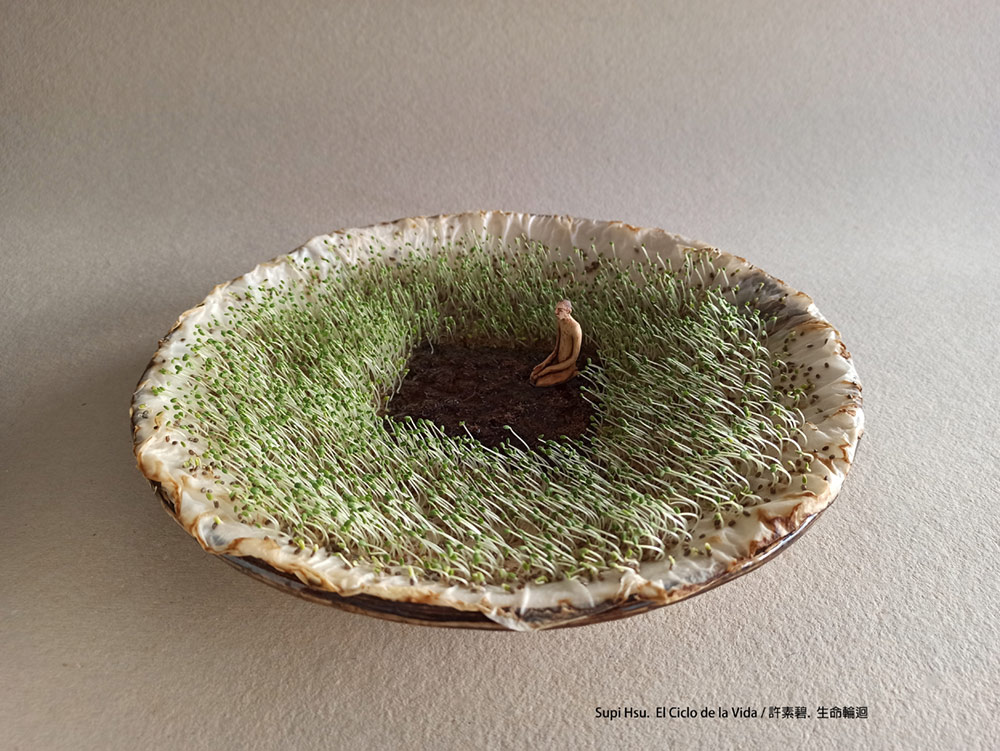 Supi Hsu. El Ciclo de la Vida. 2022. Cerámica, semillas ,tierra y agua.