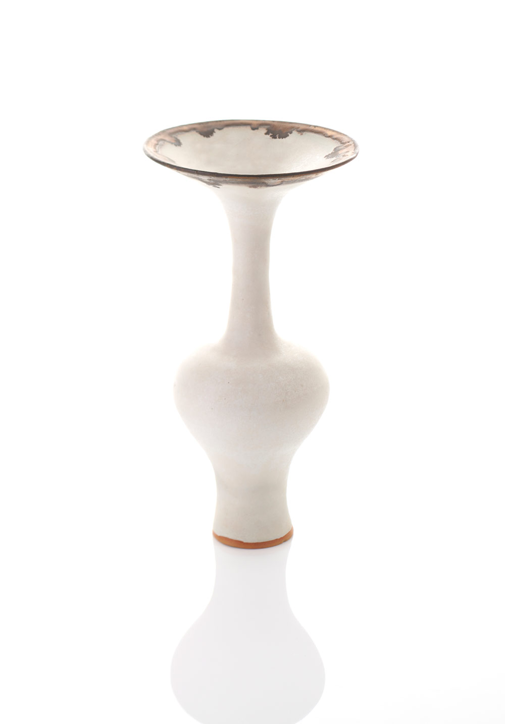 Lucie Rie. Jarrón, 1982. Gres con esmalte blanco y borde de manganeso dorado. 27 cm de altura. Colección privada. Foto: Sylvain Deleu, cortesía de Offer Waterman.