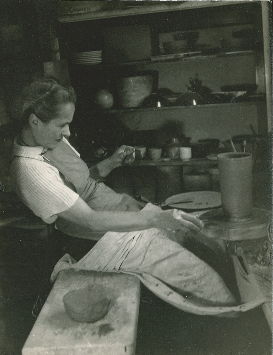 Lucie Rie en el torno de alfarero, Londres, años cincuenta. Cortesía de Lucie Rie Archive, Sainsbury Centre, UEA 5047.