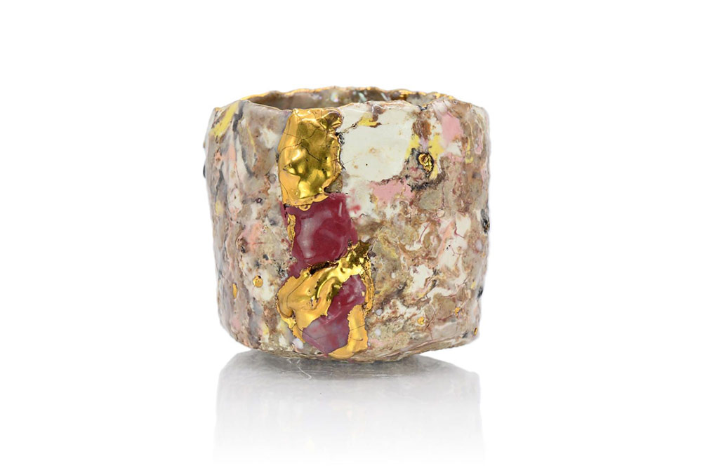 Foto: “Chawan Éclat (ceremonial tea bowl). Glaze, Pigment, Enamels, Lustre. 10 x 13 x 12 cm